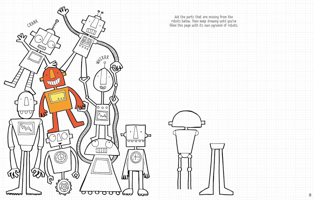 Fill an icy landscape with penguins. See how long a line you can doodle without stopping. Complete a crowd of monsters marching across the page or transform shapes into a gallery of faces. This eclectic activity book has lots of exciting ideas for you to explore with your pencils, crayons or felt-tip pens. There's even a herd of giraffes who need you to colour in their patches!