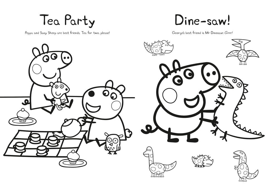 Join Peppa in this SUPER bumper colouring book. Enjoy colourful tea parties, blasting off into space, and singing along with Peppa and George. With 64 easy-to-colour pages, Peppa fans will be entertained for hours.