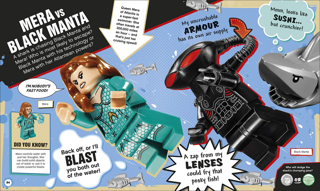 Read about amazing Super Heroes and wicked super-villains. Discover their awesome powers and accessories. Decide who comes out on top in each battle, including Batman vs Poison Ivy, The Flash vs Captain Cold, and Firestorm vs Firefly.