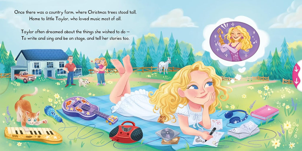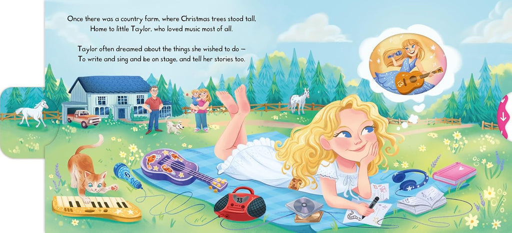Get to know global superstar Taylor Swift in this push, pull and slide book, perfect for little Swifties! Little Stars: Taylor is an interactive introduction to the chart-topping singer and songwriter, and empowers young children to dream big. Push, pull and slide the scenes to discover Taylor’s incredible life story, play along with her cats at home and even join Taylor on stage! With bright, colourful illustrations by Mariana Avila Lagunes, fun rhyming text and lots of detail to spot, young children will want to revisit this book again and again. Can you also find all the Taylor Swift Easter eggs hidden throughout? Meet more Little Stars in this series! Also available: Beyoncé