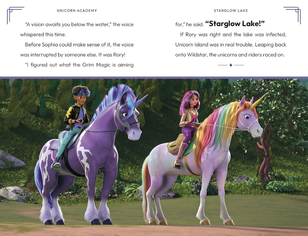 Each story follows the friends at Unicorn Academy as they explore the island and its many magical secrets, from Grim Magic in Starglow Lake and a vision of Sophia's dad in a pool of water to a broken friendship and a gem that must be put back together, there is never a dull moment at Unicorn Academy!