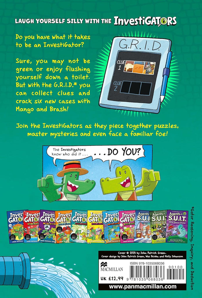 A special interactive installment of the early reader graphic novel series following the super spy alligator duo, the InvestiGators, as they travel through the sewers and fight the forces of evil. Special agents Mango and Brash are back again, and this time they’ll be asking their readers for help in cracking the case! The gators have been given a brand new add-on for their V.E.S.T.s to help with gathering evidence and making sense of clues – the G.R.I.D. (Gator Reasoning, Inquiry, Deduction) – and with that powerful tool in hand, kids can follow along as they solve six brand-new mysteries! Featuring plenty of familiar faces from investigations past, as well as a few brand new suspects, Mango and Brash and YOU (the reader) will get to the bottom of cases big and small!