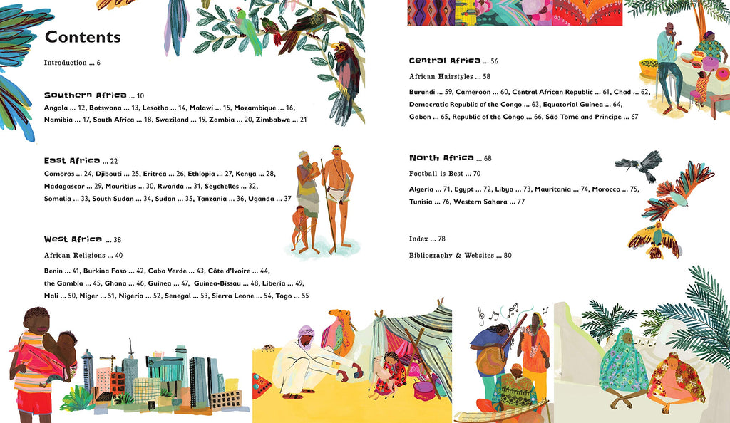 "This beautifully produced atlas of Africa is a fantastic book for any home library or classroom." BookTrust, the UK's largest reading charityes in all their variety. It divides Africa into five sections: South, East, West, Central and North, each with its own introduction. This is followed by a page per country, containing a delightful mix of friendly, informative text and colourful illustrations. With just a couple of facts per page, the book is perfectly geared toward readers aged six and up, and imagined as a diving-off point to inspire children to find out more about each and every country.