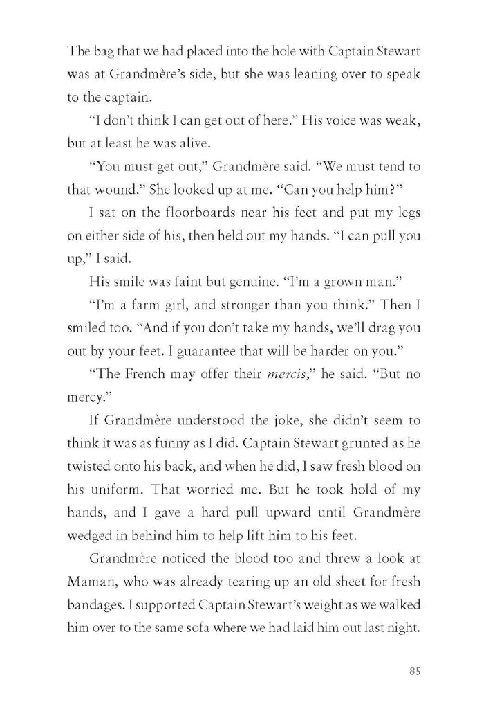 Suddenly, an impossible chance to save her father falls into Meg's lap. After following a trail of blood in the snow, Meggie finds an injured British spy hiding in her grandmother's barn. Captain Stewart tells her that a family of German refugees must be guided across Nazi-occupied France to neutral Spain, whereupon one of them has promised to free Meg's father. Captain Stewart was meant to take that family on their journey, but too injured to complete the task himself, he offers it to Meg, along with a final code from Papa to help complete the mission -- perhaps the most important, and most difficult, riddle she's received yet.