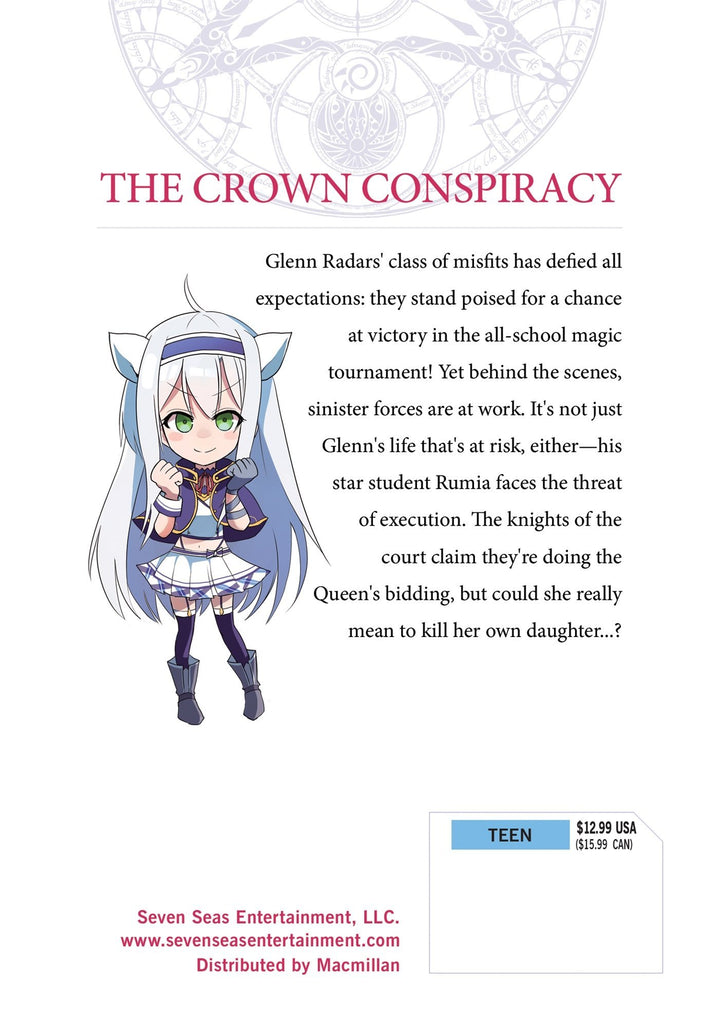 Glenn Radars’ class of misfits has defied all expectations: they stand poised for a chance at victory in the all-school magic tournament! Yet behind the scenes, sinister forces are at work. It’s not just Glenn’s life that’s at risk, either–his star student Rumia faces the threat of execution. The knights of the court claim they’re doing the Queen’s bidding, but could she really mean to kill her own daughter…?