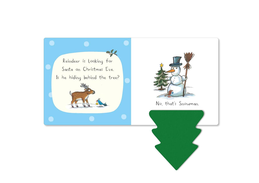 It’s Christmas Eve and Reindeer can’t find Santa anywhere! Lift the felt flaps to help look for him. Which other festive friends will you meet along the way? With soft flaps on every spread that are easy for babies to lift and help develop their fine motor skills, this gorgeous book by Axel Scheffler, bestselling illustrator of The Gruffalo, is the perfect Christmas gift for little ones. Discover more adventures from Axel Scheffler: In the Jungle, Who's Hiding in the Park? and My First Search and Find: On the Farm.