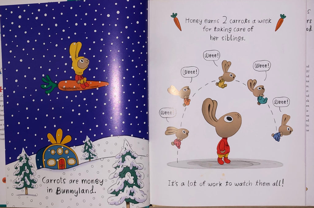 Sonny gets three whole carrots a week for his allowance and wants to buy everything with it! But he soon discovers his money won't go that far, and his mom tells him he needs to make some choices. That doesn't sound like much fun to Sonny, especially when he learns that the bouncy castle he's been eyeing goes for ONE HUNDRED carrots. Ridiculous! But eventually, after a little math and a little more thinking, he has a blast discovering what's really important to him and worth spending his carrots on.