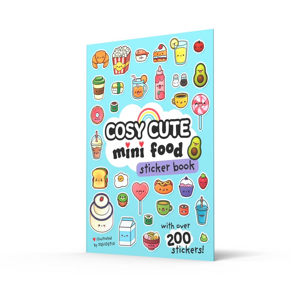 This quirky food themed sticker book is the perfect gift for fans of all things cosy and cute!Meet the mini food!Use your adorable stickers to complete 10 colourful scenes, featuring food with faces. Spend a day at the funfair, enjoy a picnic in the park, and get front row seats to a sushi show! With over 200 stickers, you can use them to decorate the scenes – and your stuff too!Suitable for age 5 up – but the adorably whimsical mini food can be enjoyed by people of any age. Perfect for relaxing, self care and fans of cosy colouring.A must-buy for fans of all things cute!