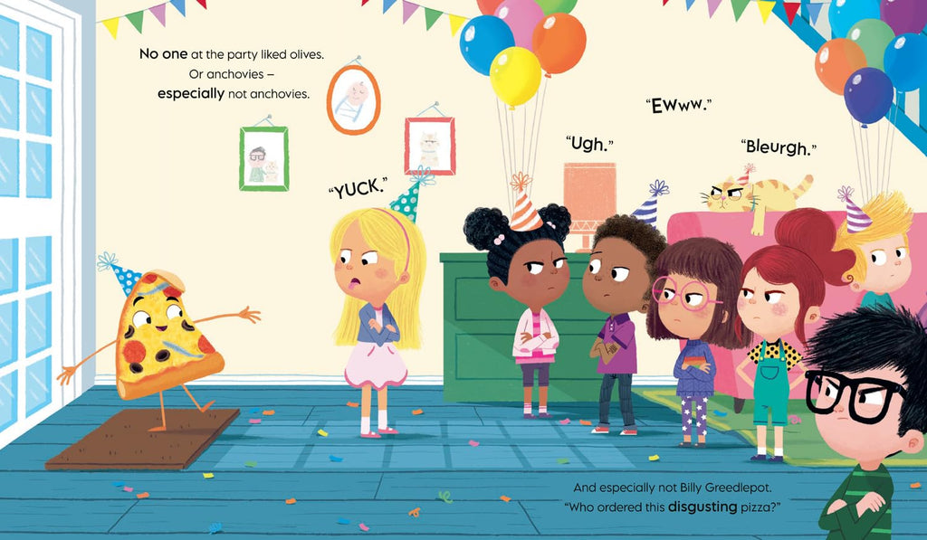 Making friends isn't always easy, and all Frank the Pizza wants is someone to accept him for who he is. So when he gets invited to a birthday party, his parents worry and warn him to be careful … but Frank is already planning his outfit.