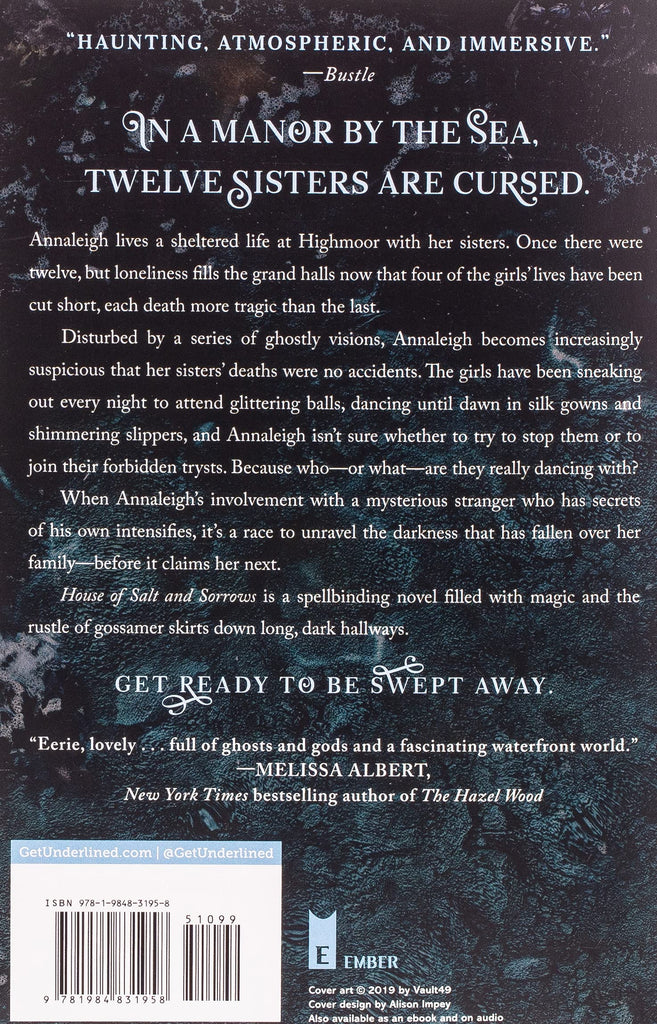 When Annaleigh's involvement with a mysterious stranger who has secrets of his own intensifies, it's a race to unravel the darkness that has fallen over her family--before it claims her next. House of Salt and Sorrows is a spellbinding novel filled with magic and the rustle of gossamer skirts down long, dark hallways. Get ready to be swept away.