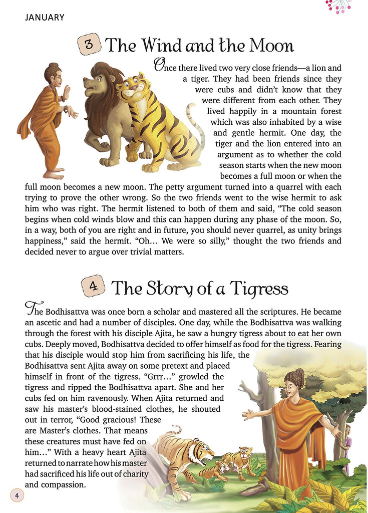 The beautiful illustrated '365 Jataka Tales' Impart ancient Buddhist wisdom and moral guidance in an easy and entertaining manner. These stories of the Bodhisattva, or buddha-to-be, are tales from the previous lives of Buddha, where born as animal or human, he had to experience many a moral and ethical dilemma before attaining enlightenment. This book is the ideal gift for children, encouraging a more wholesome, positive and responsible outlook to life.