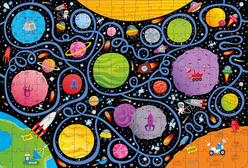 This delightful pack contains a beautifully illustrated jigsaw of a vibrant space scene that features a maze to solve once it's assembled. It also includes a 32-page book with a selection of more space-themed mazes for children to have fun finding their way through.